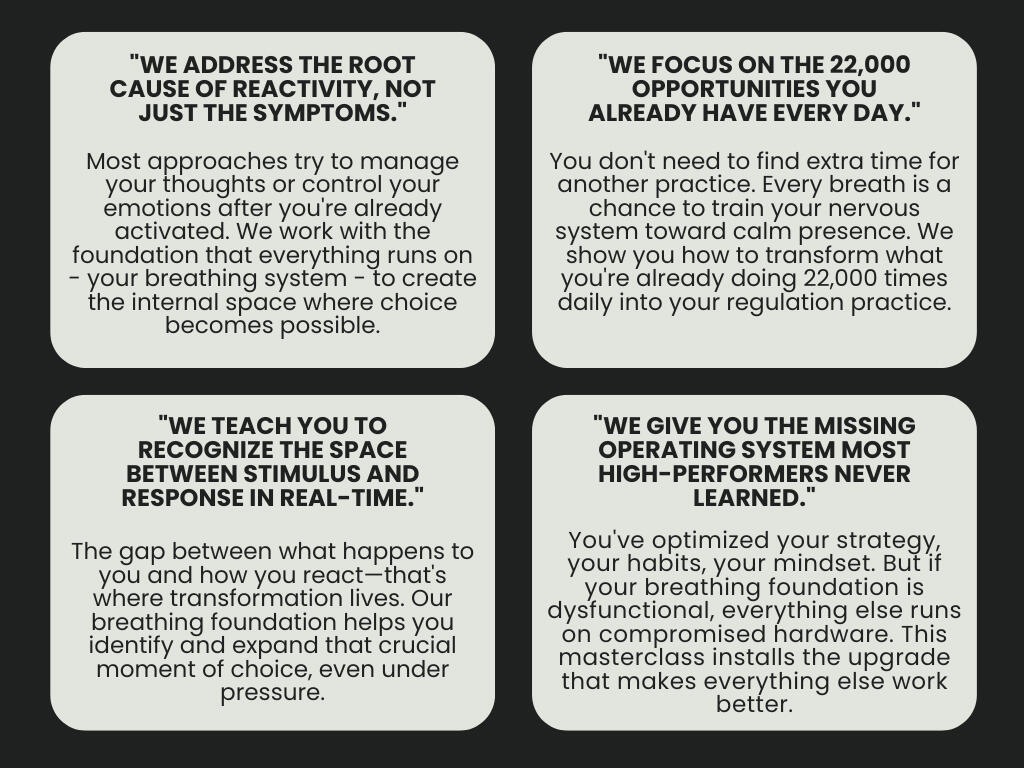 Discover the three critical breathing errors that keep high-performers stuck in mental overdrive and prevent access to calm presence under pressure.